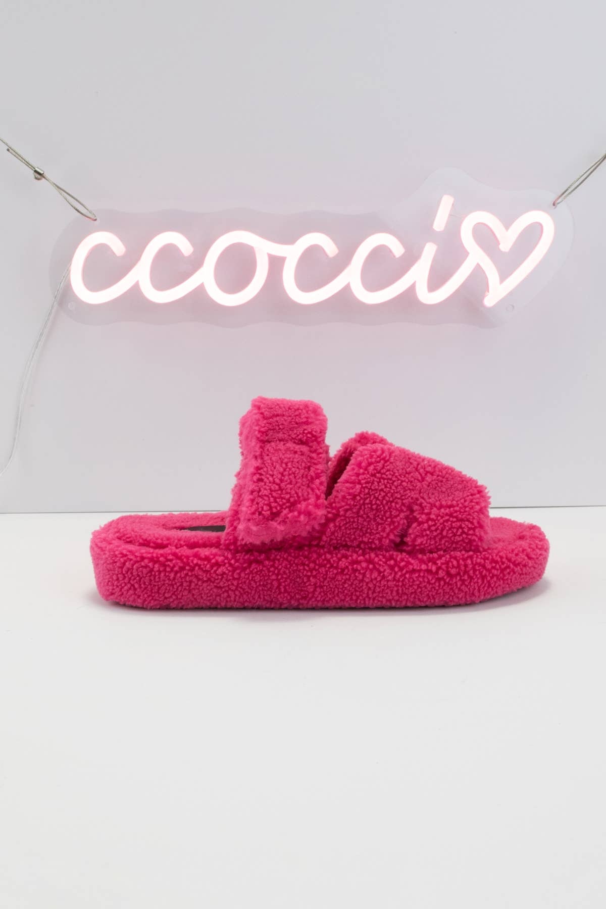 ALL AROUND SHERPA LINING CHUNKY SLIPPER WITH AN H TOP DESIGN AND RUBBER SOLE ECO FUR HEEL HEIGHTS: