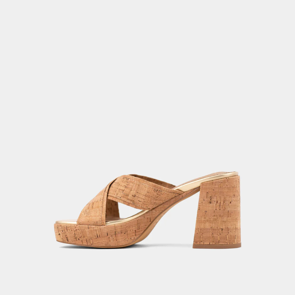The ELEANOR heel sandal in Cork brings modern sophistication to your spring/summer wardrobe. Designed with a natural cork crisscross upper, a sturdy block heel, and a metallic gold insole for a touch of luxe, this sandal is as stylish as it is versatile. The cushioned footbed ensures all-day comfort, making it perfect for brunch dates, outdoor parties, or evening soirees. Step into elegance with ELEANOR