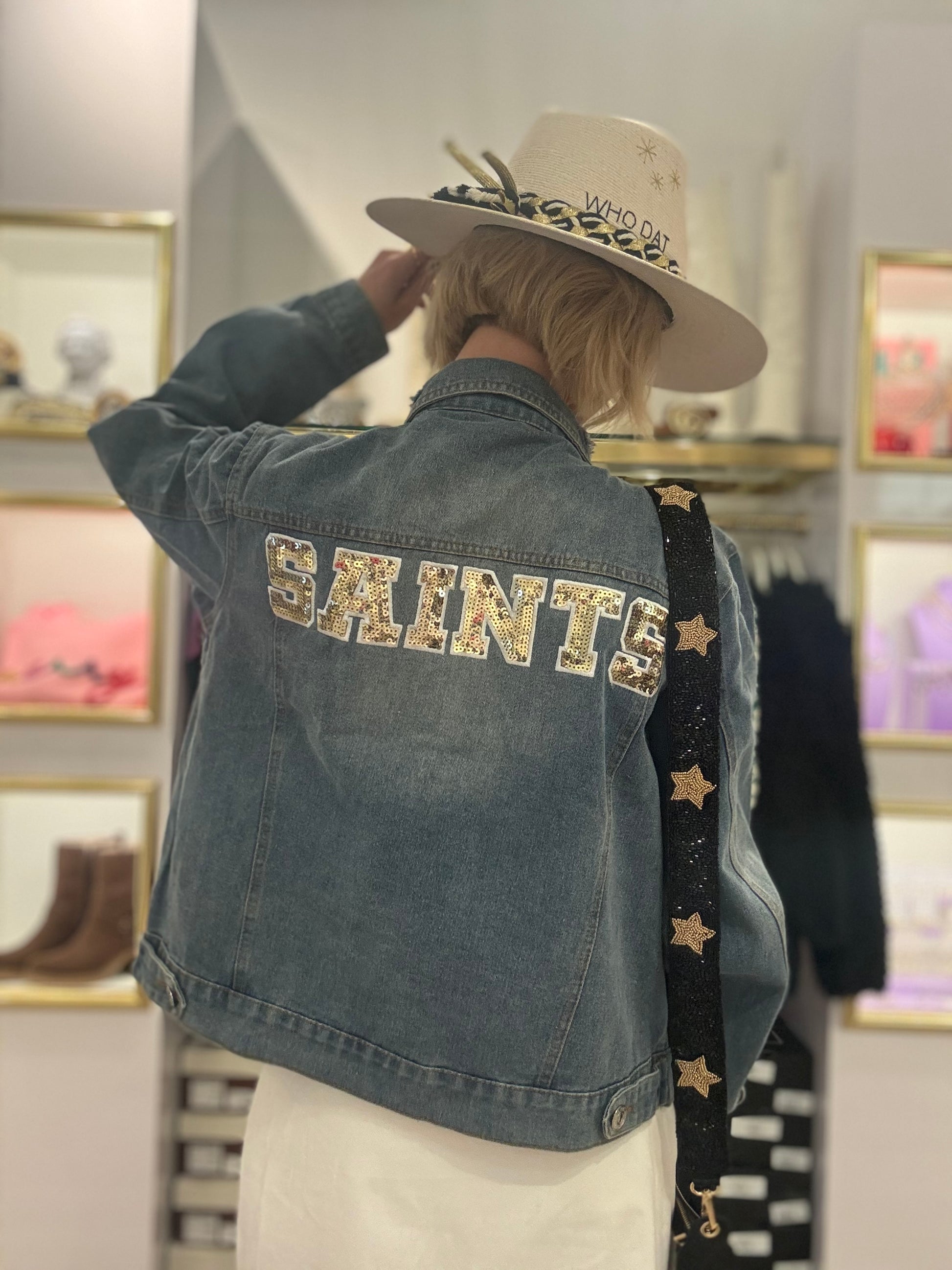 The perfect Saints denim jacket. A staple for every Who Dat fan!